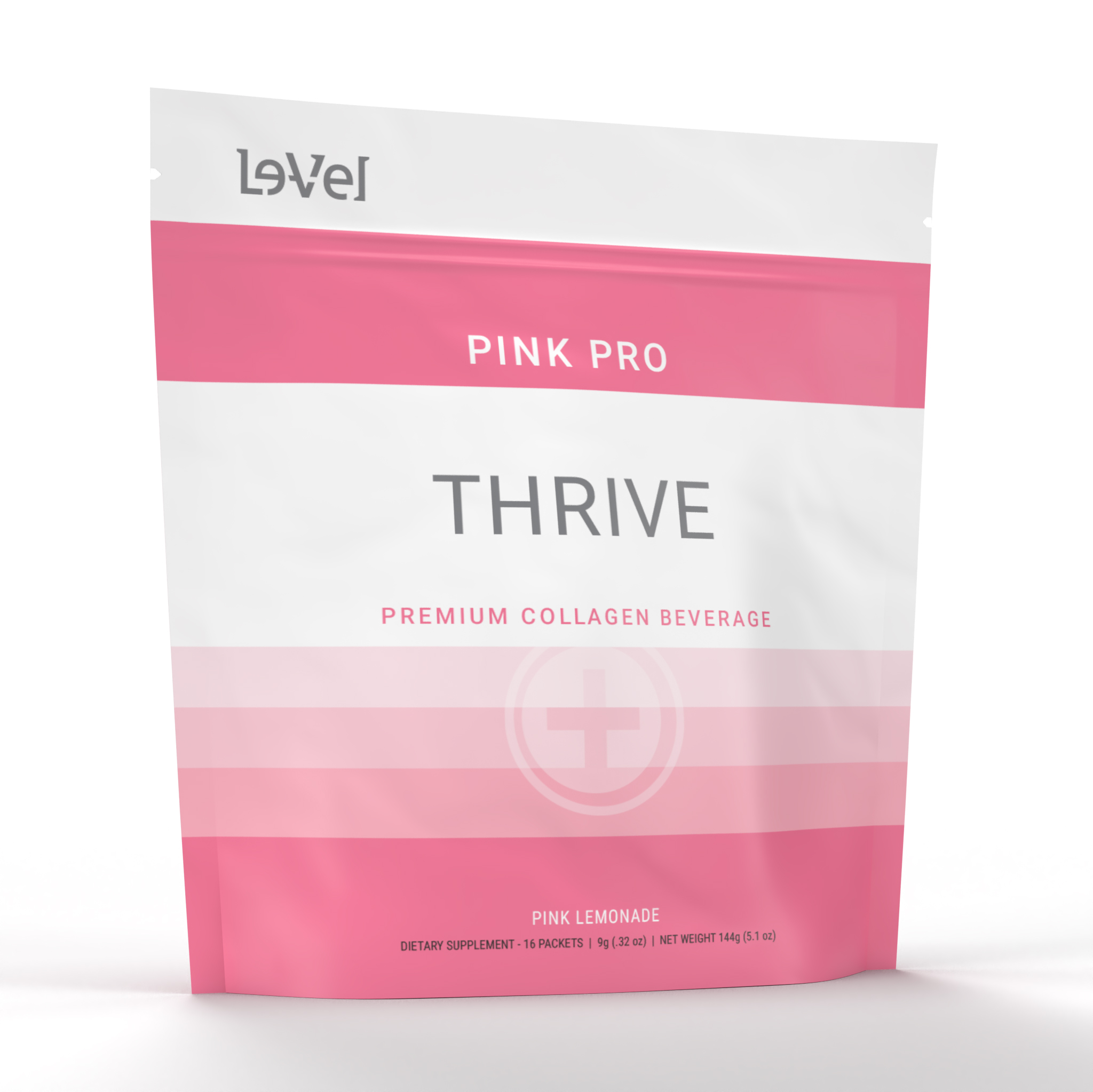 Get your desired beauty results with THRIVE Pink Pro or Pink Pro IC (Infused with Natural Caffeine), a delicious pink lemonade flavored collagen powder drink.
